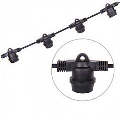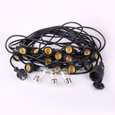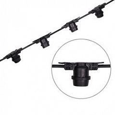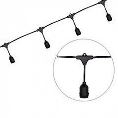 Необычные ретро гирлянды со свисанием позволяют создавать оригинальные вариации оформления зон отдыха на улице. Каждая лампочка крепится к кабелю на небольшом расстоянии, что позволяет закрепить бумажный фонарик или любой другой аксессуар. В каталоге представлены изделия черного и белого цвета.