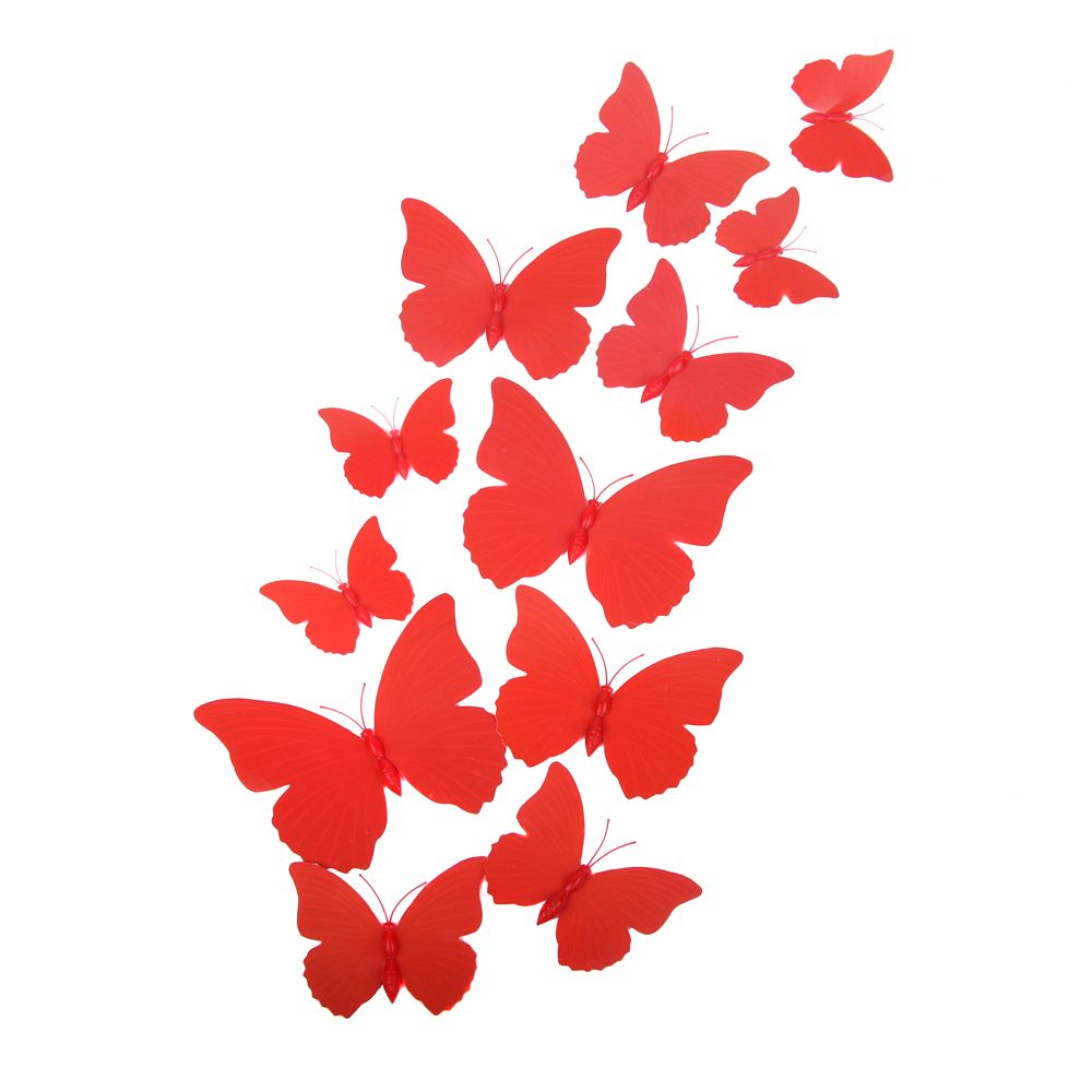 Бабочки на булавке 12 шт пластик красные
