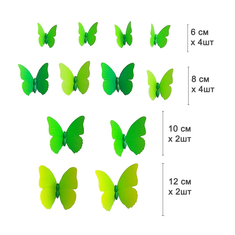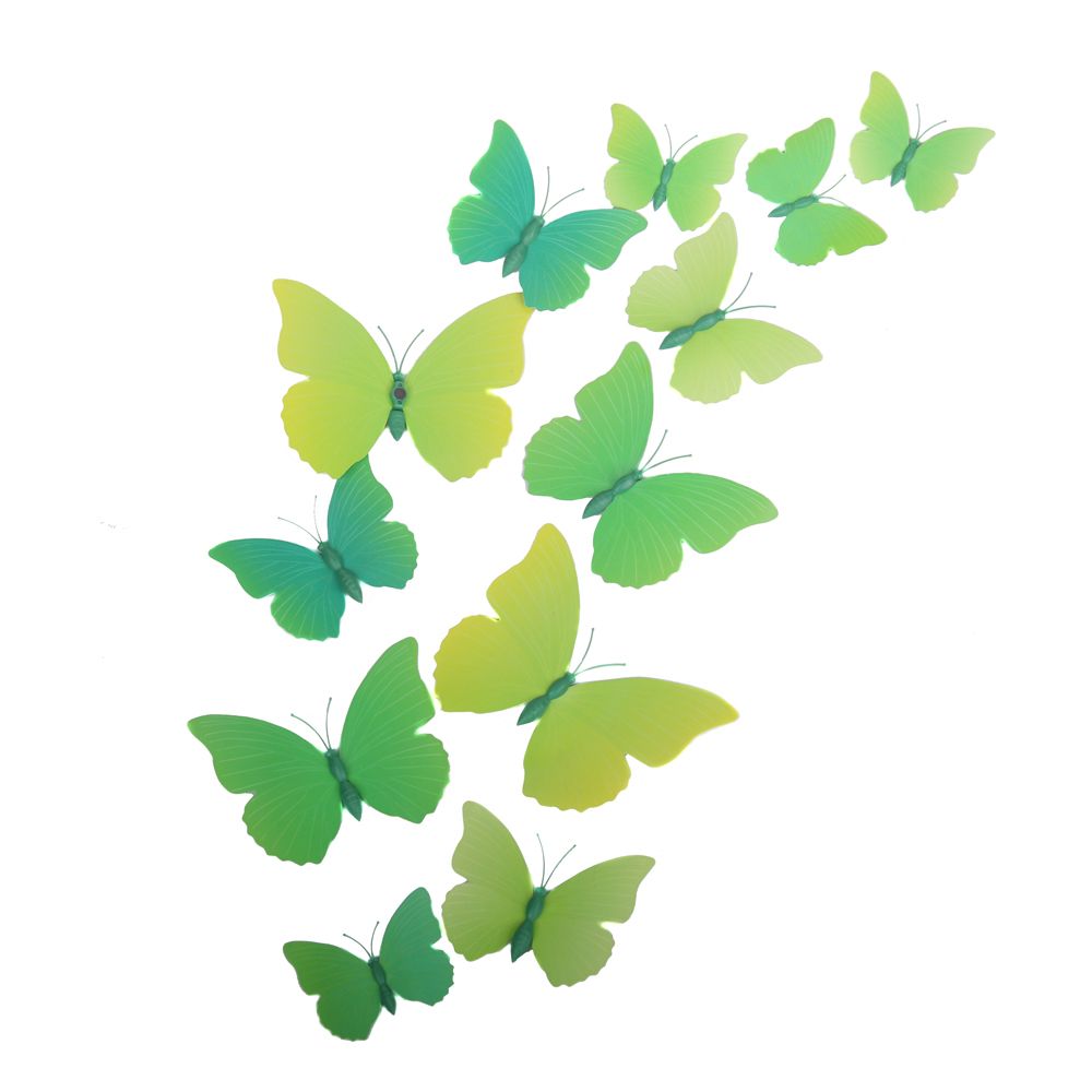 Бабочки на магните 12 шт пластик салатовые