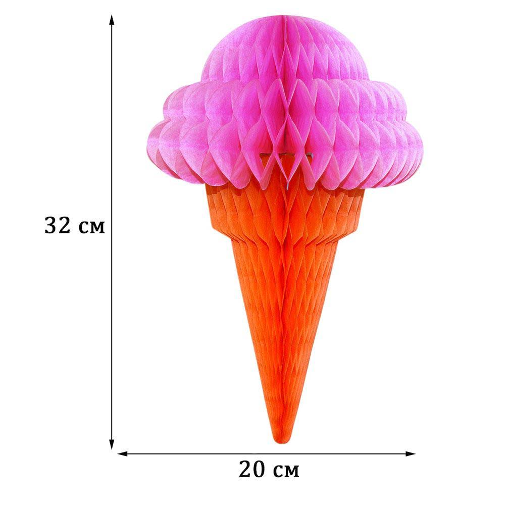 Бумажное украшение «Мороженое» 32х20 см — стильное решение для праздничного декора, оформления фотозоны, витрины магазина и тематических мероприятий.