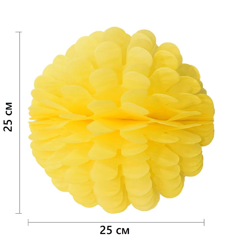 Бумажное украшение Цветочный шар-соты 25 см, желтый