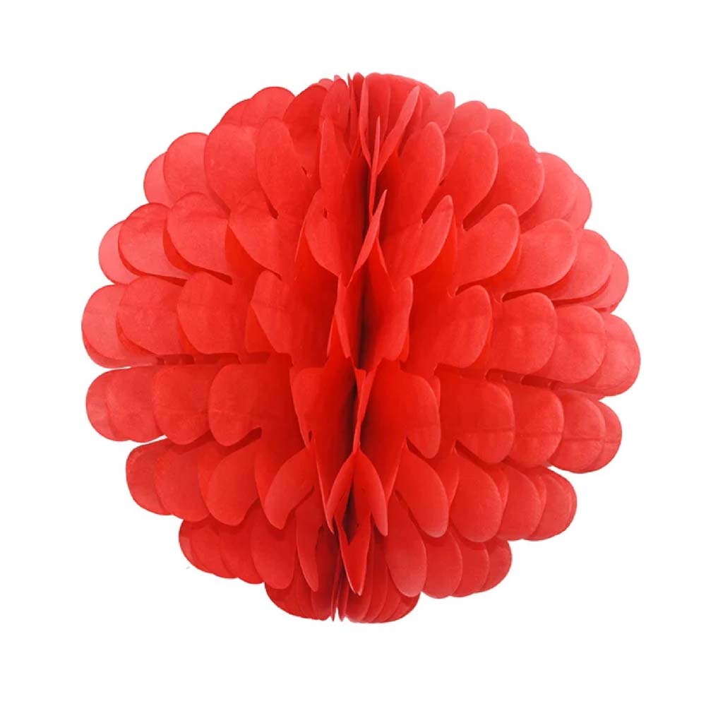Бумажное украшение Цветочный шар-соты 25 см, красный