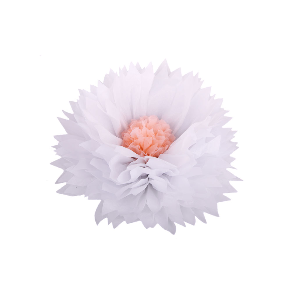Бумажный цветок 30 см белый+персиковый