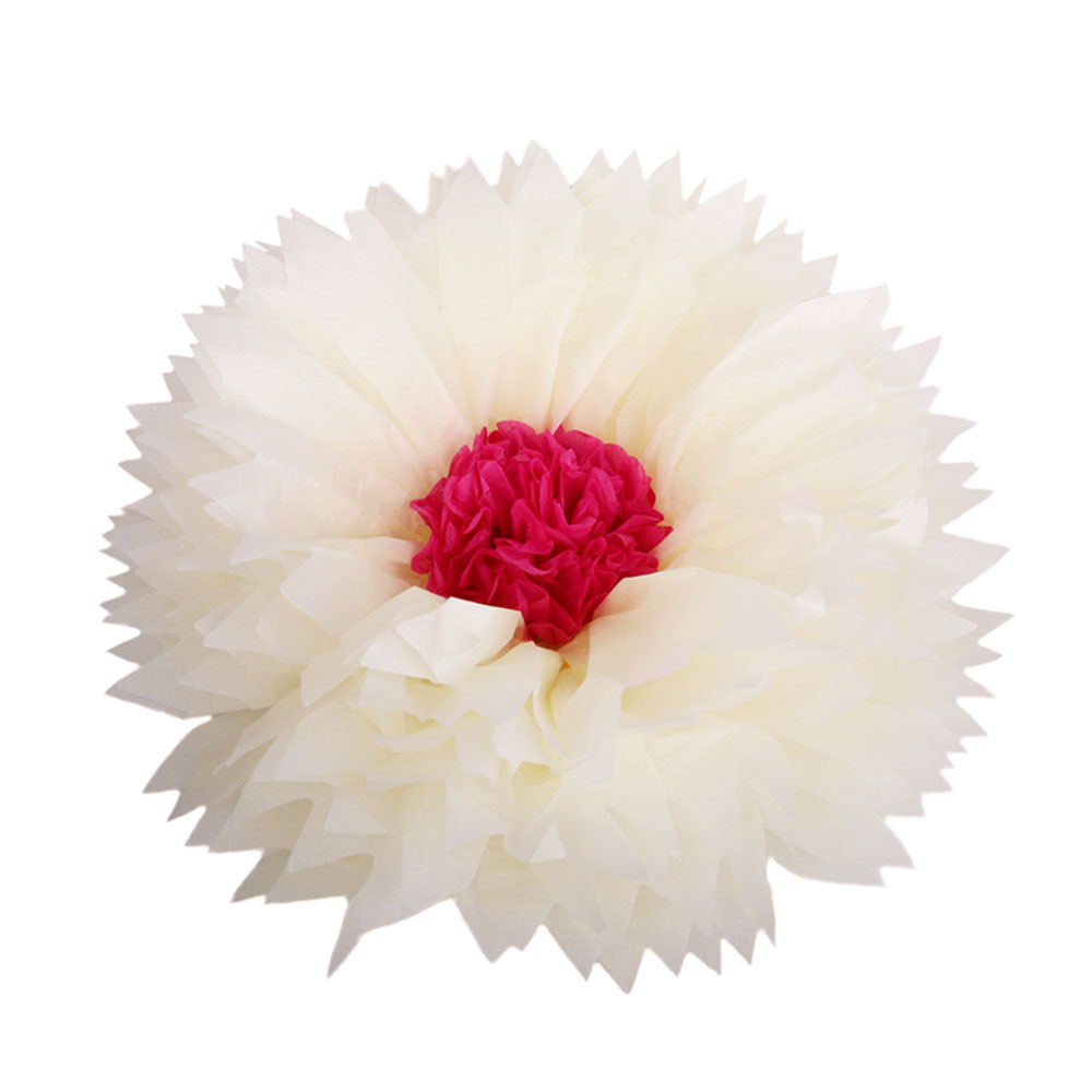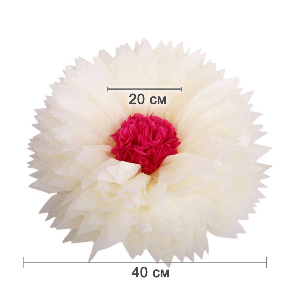 Бумажный цветок 40 см айвори+малиновый