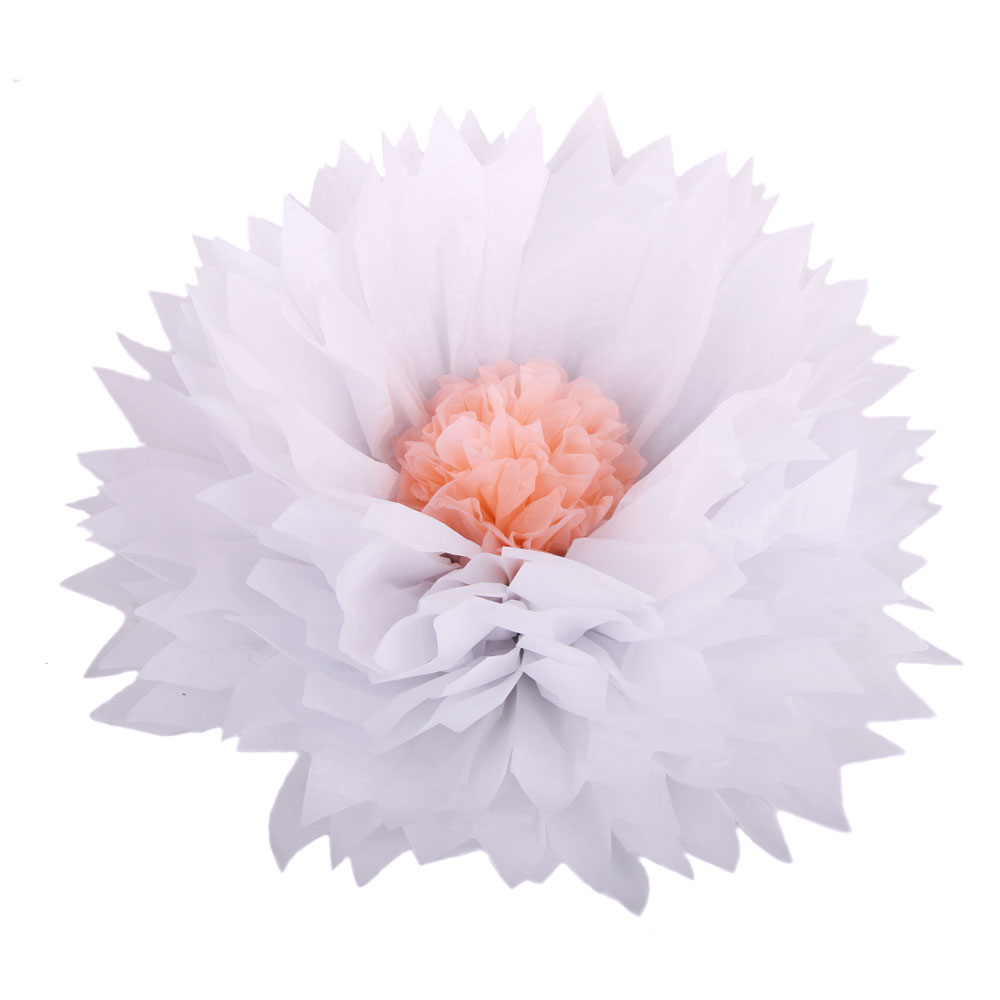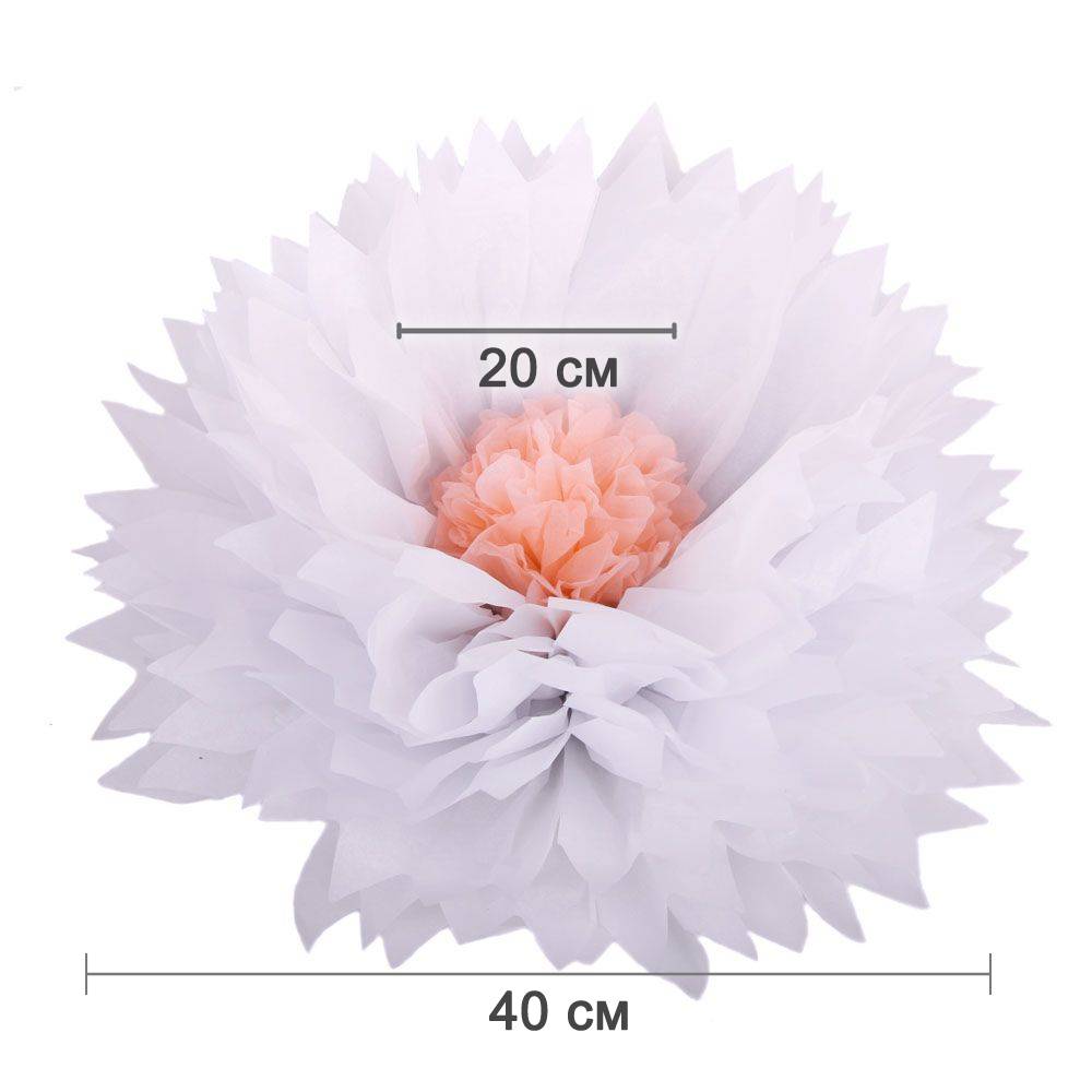Бумажный цветок 40 см белый+персиковый