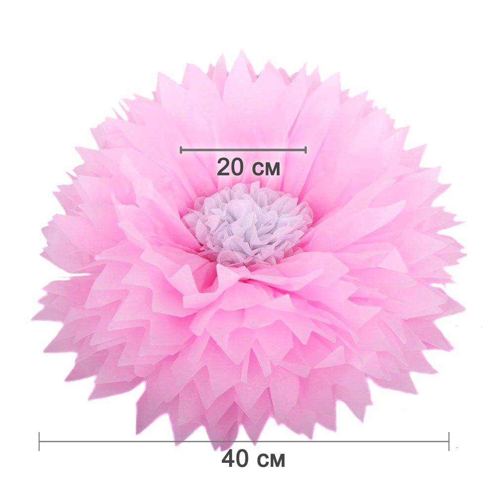Бумажный цветок 40 см розовый+белый