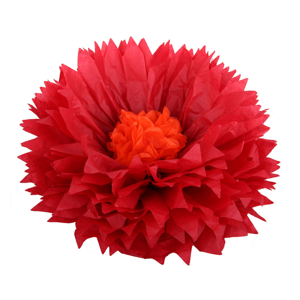 Бумажный цветок 40 см красный+оранжевый