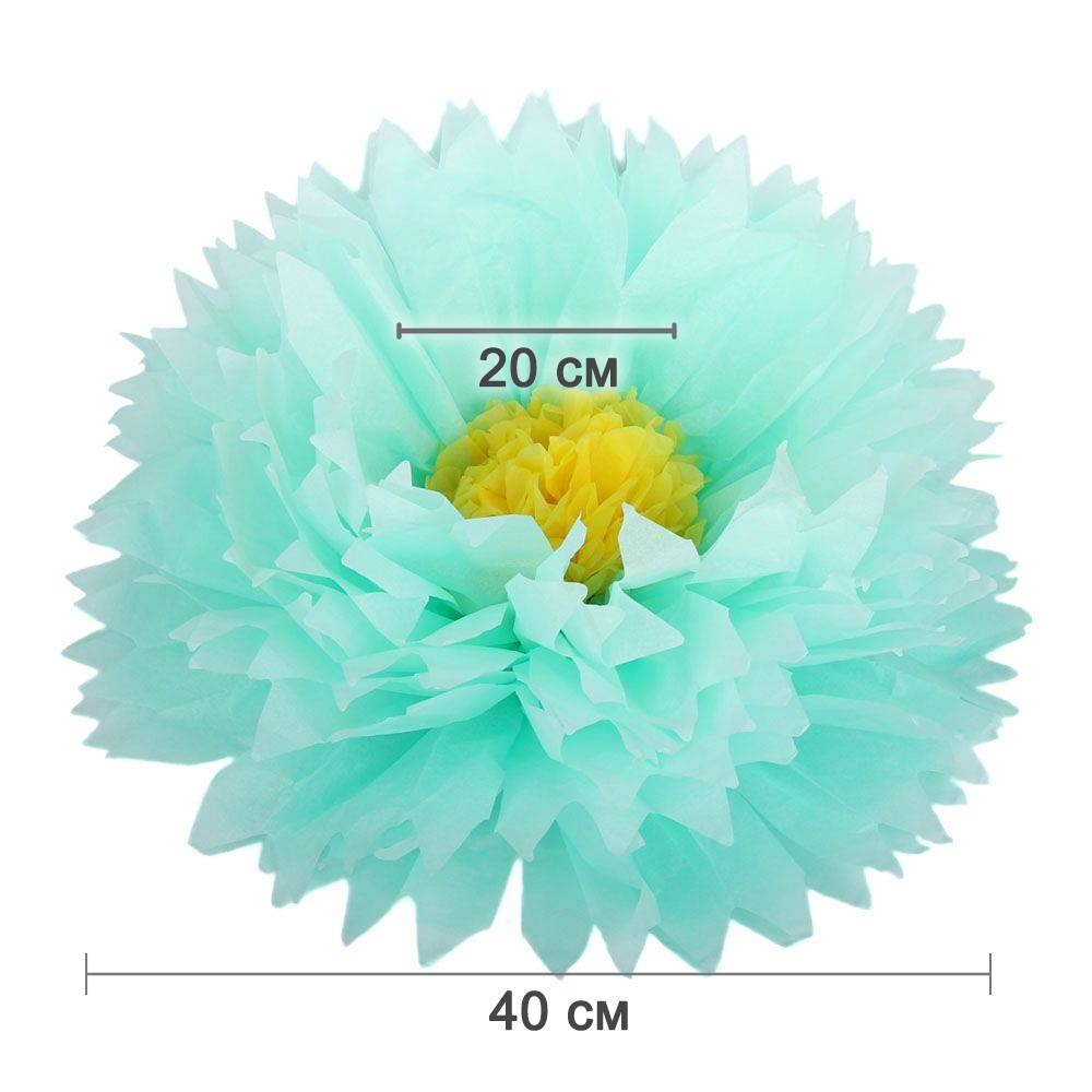 Бумажный цветок 40 см мятный+желтый