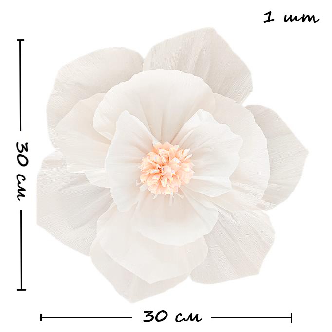 Бумажный цветок гофрированный 30 см белый+персиковый
