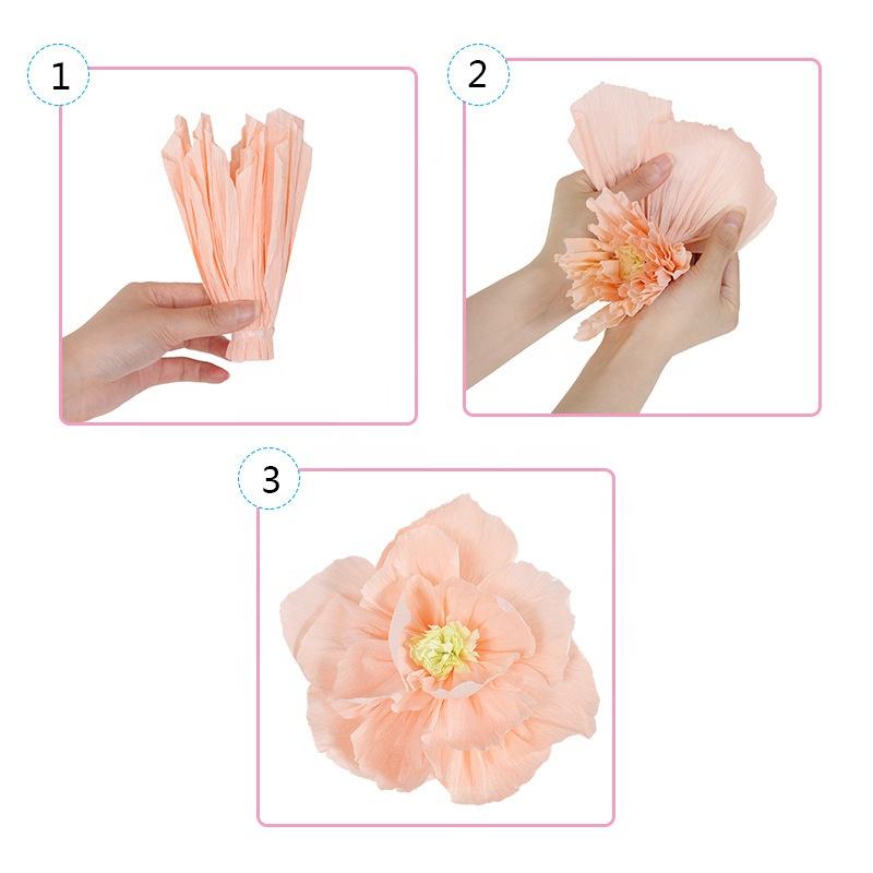 Цветы из гофрированной бумаги предварительно сложены, их легко собрать и повесить. Все, что вам нужно сделать, это распушить.