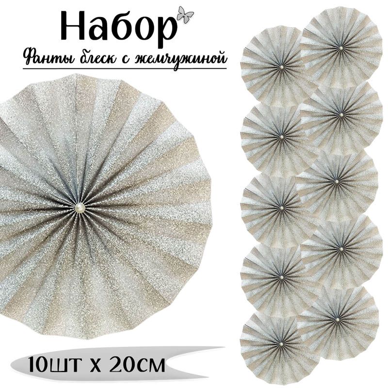 Фанты блеск с жемчужиной НАБОР 10шт х 20см, серебро