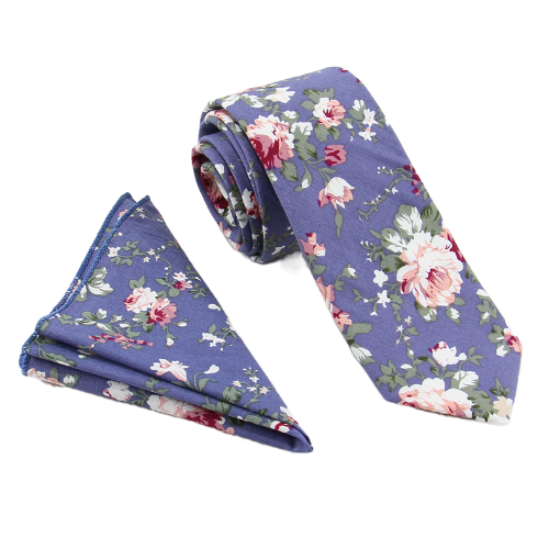 В комплект входит галстук 6х145 см и нагрудный платок 24х24 см  изготовлены из хлопка, имеют цветочный принт.