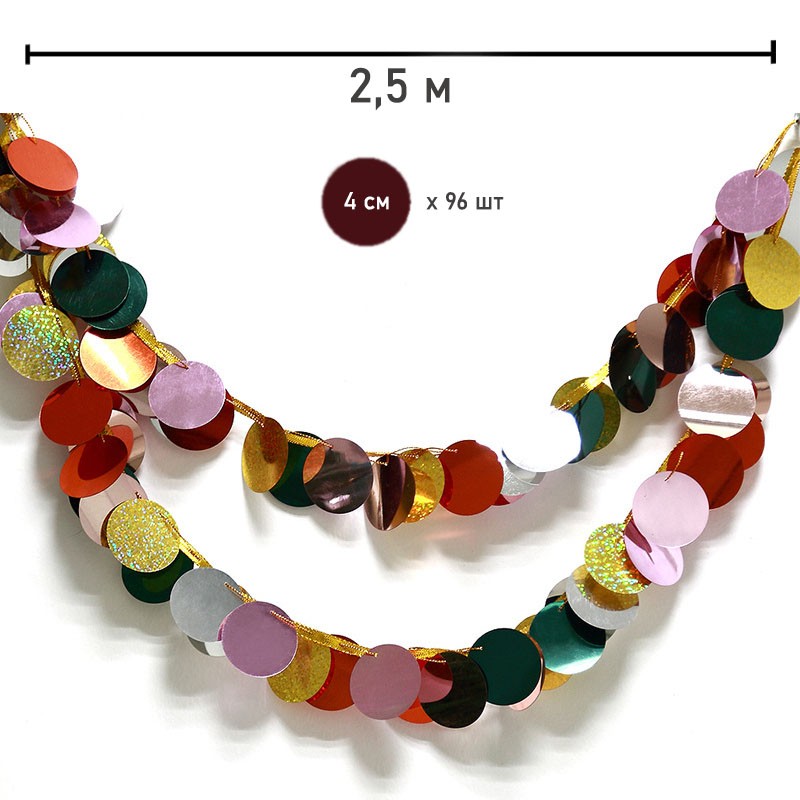 Гирлянда кружочки пайетки ассорти, 2,5 м