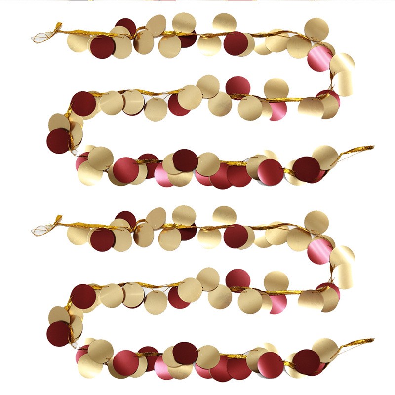Гирлянда кружочки пайетки красный+золото, 2,5 м
