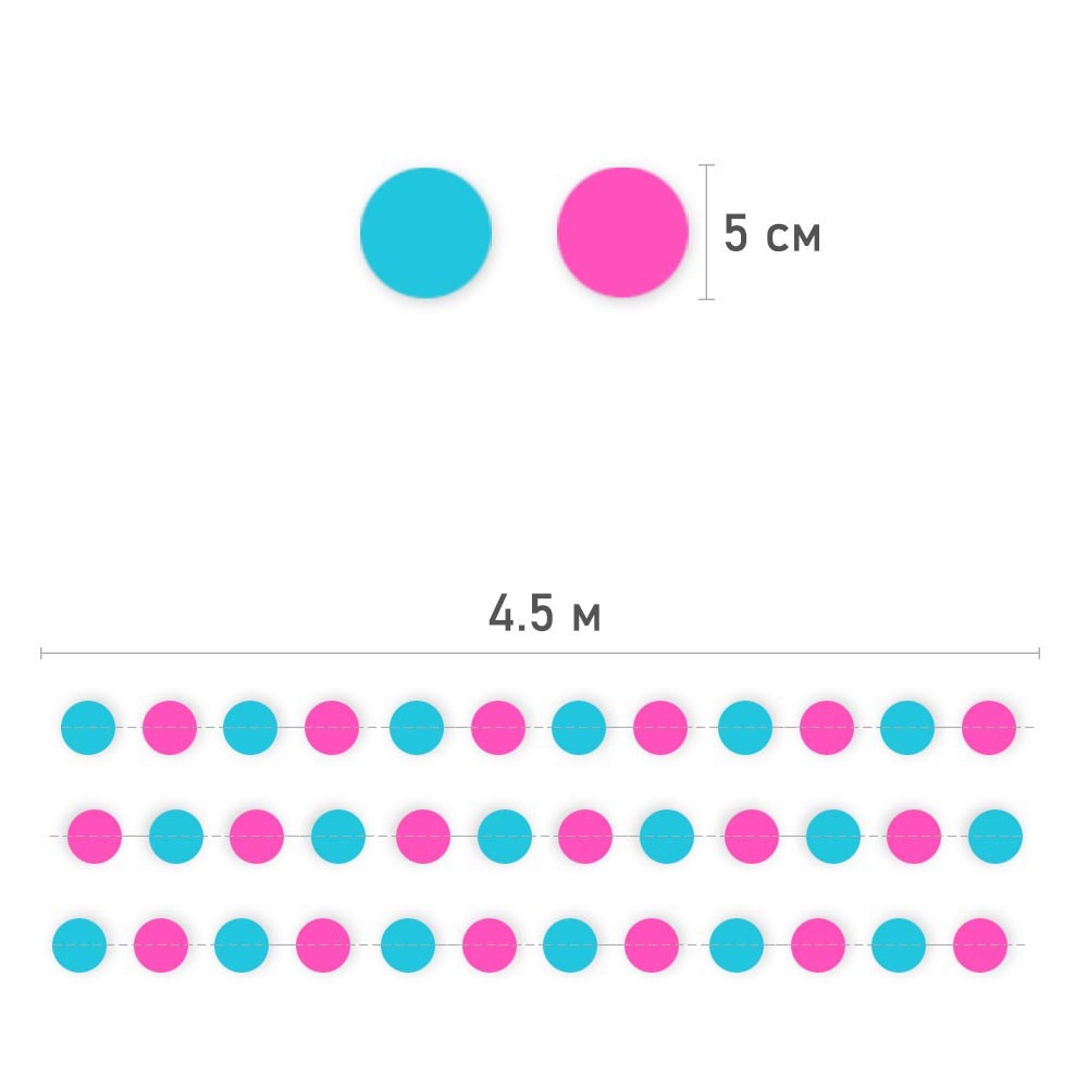 Гирлянда "Кружочки" бумажные 5 см х 4,5 м, Синий+Малиновый