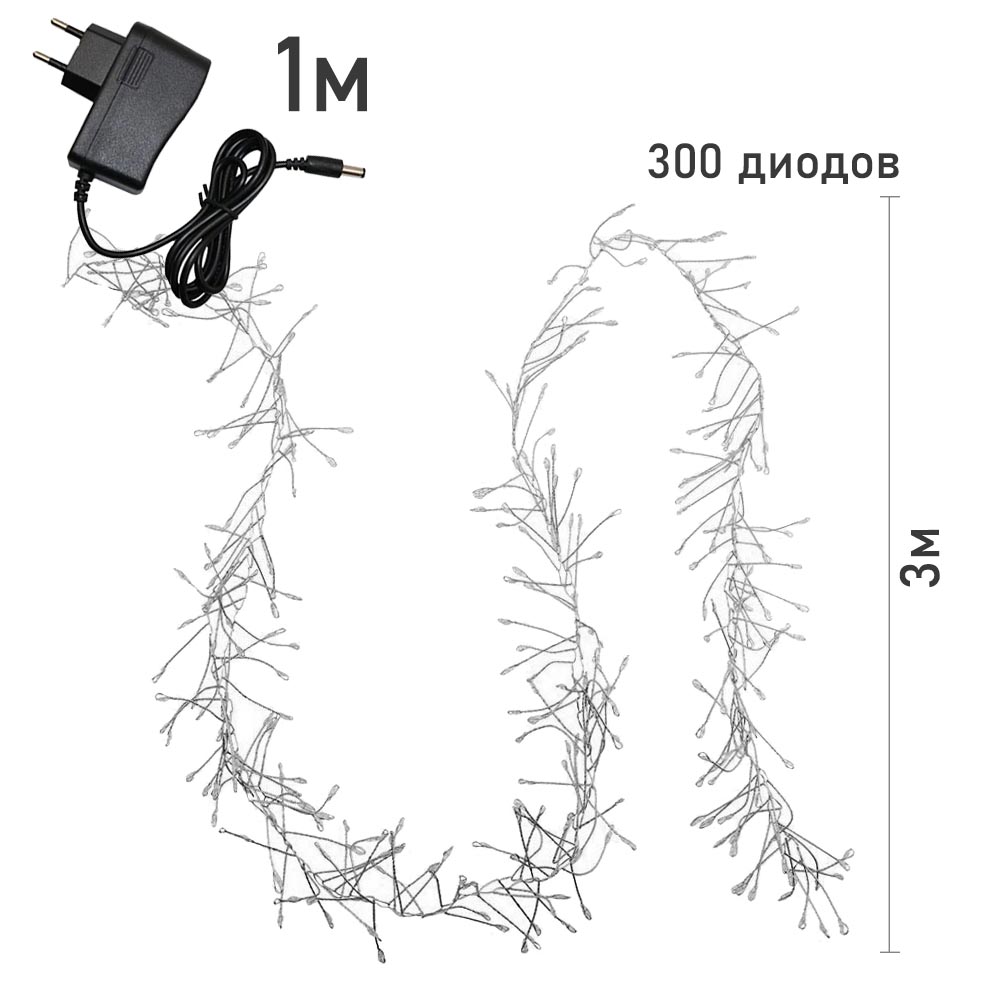 Гирлянда LED Роса-Мишура от сети, 3м х 300 диодов, разноцветный RGB