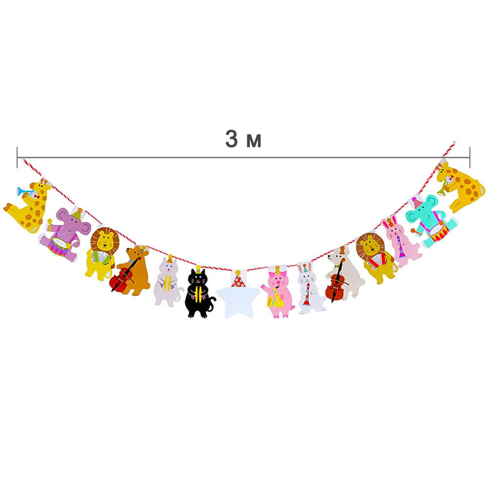 Гирлянда на веревке Цирковые зверята 3 м