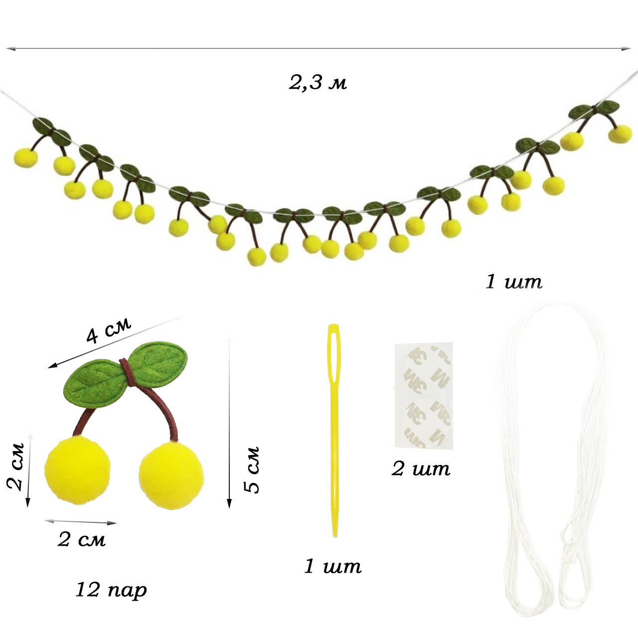 Гирлянда на веревке "Вишенки"  2 см х 24 шт х 2,3 м, "желтый" - 1 шт.
