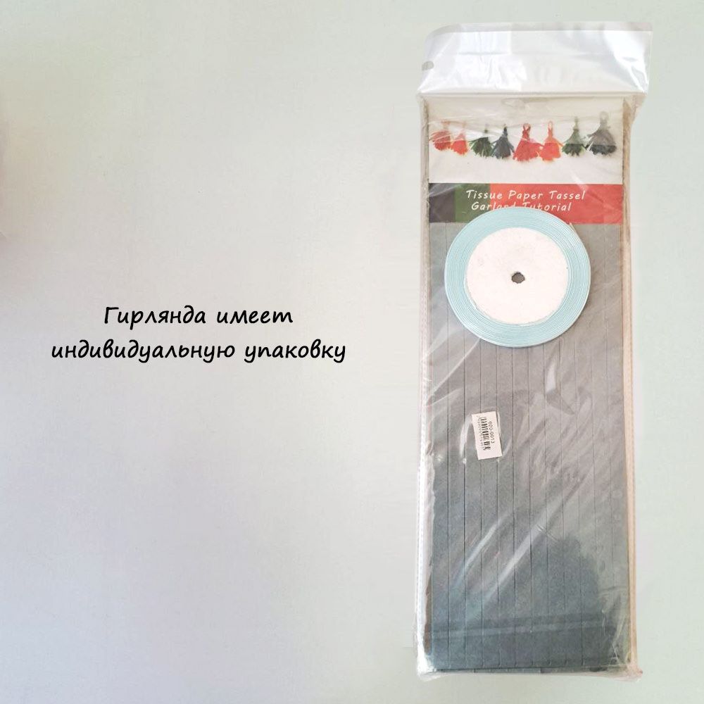 Гирлянда тассел 12 кисточек по 5 листов, серый