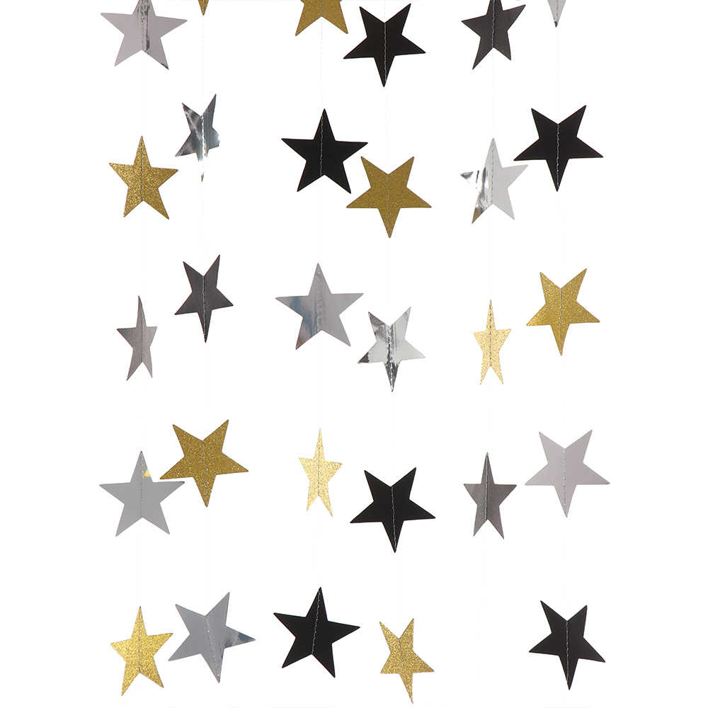 Гирлянда "Звезды" блеск 7 см х 4 м, черный+серебро+золото