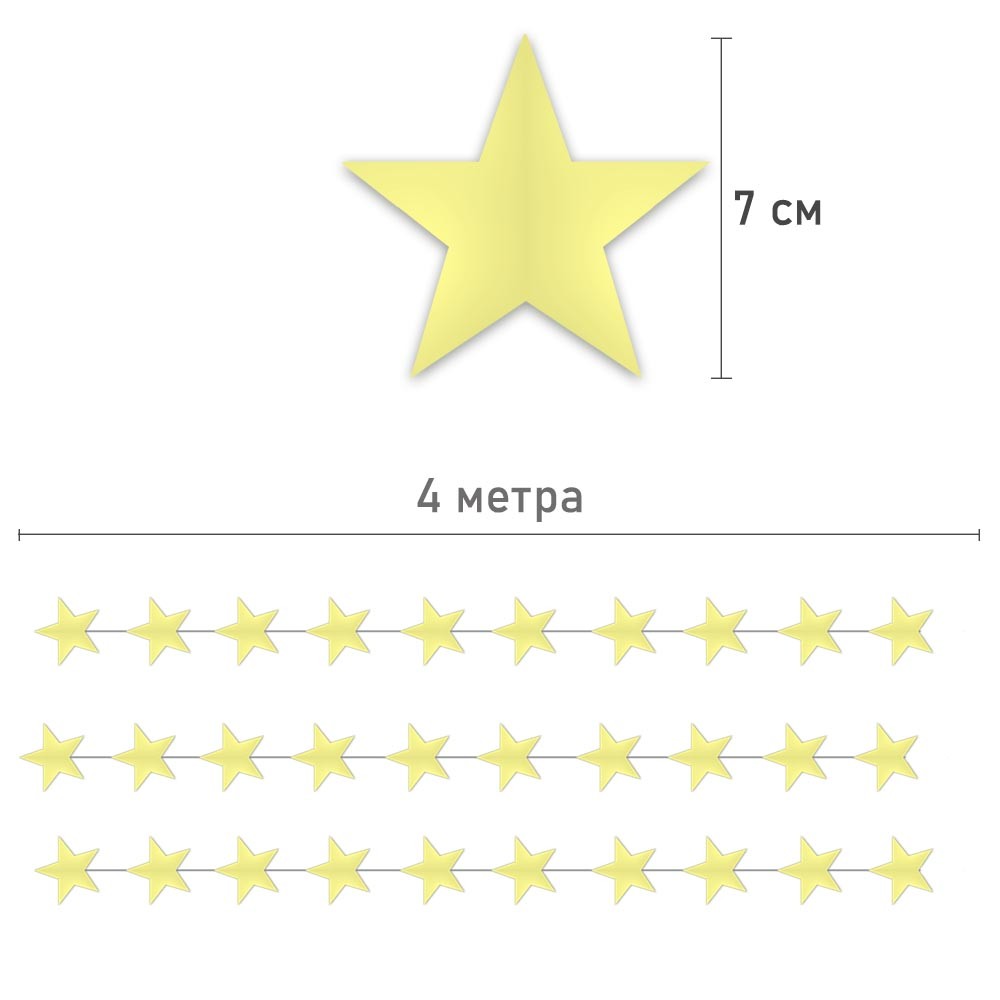 Гирлянда "Звезды" бумажные 7 см 4 м, Желтый