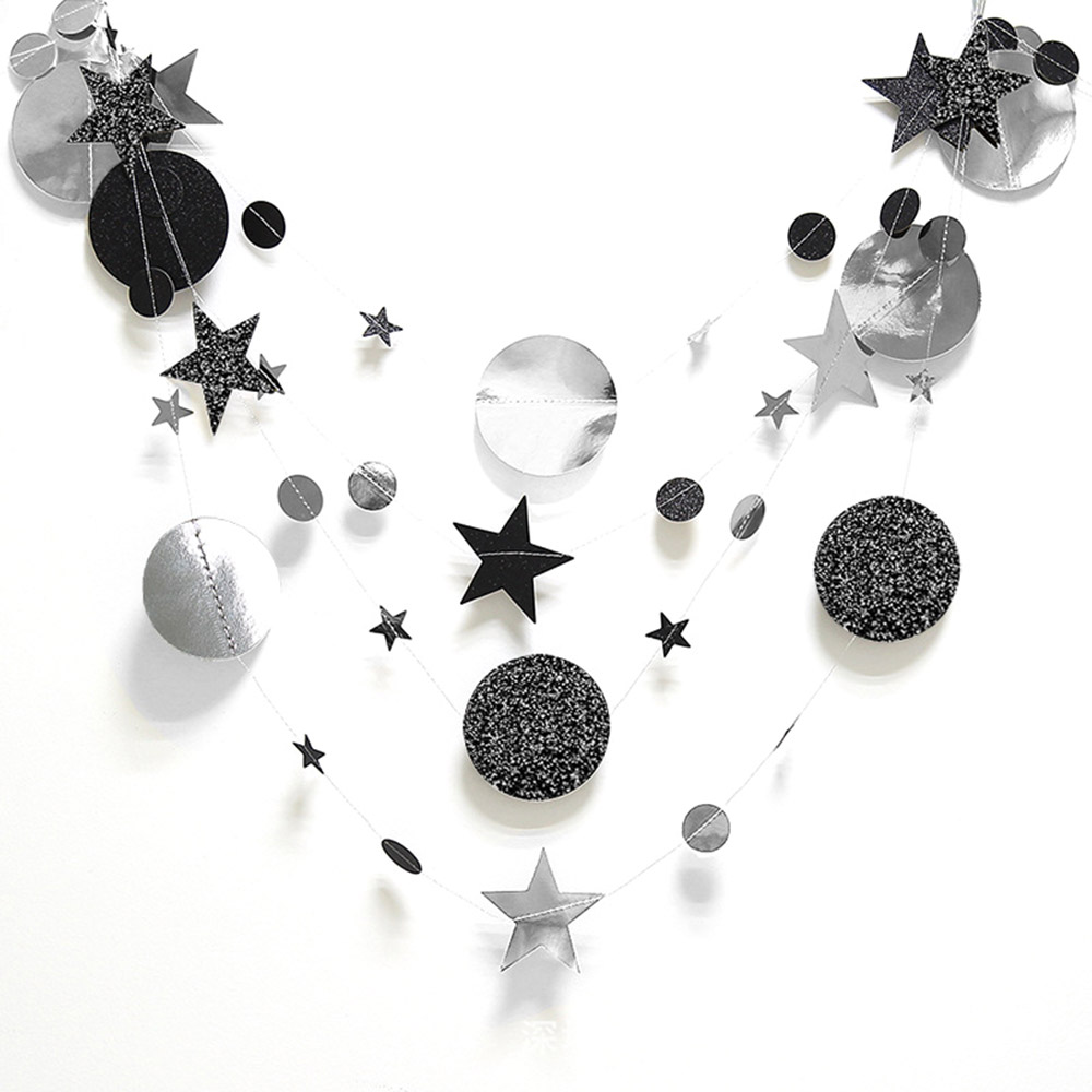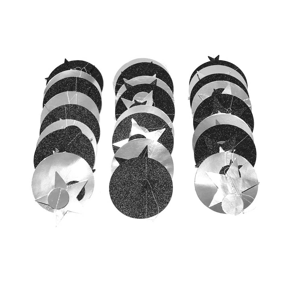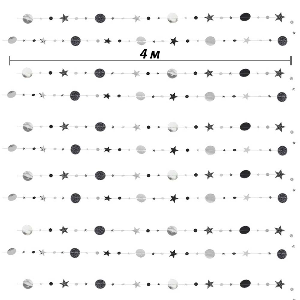 Гирлянда Звезды/Кружочки 4 м металлик/блеск, Серебро/Черный