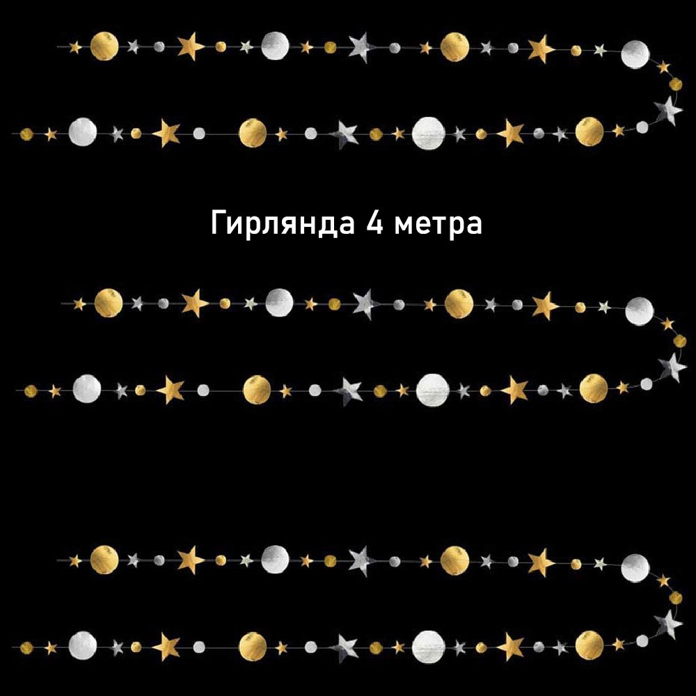 Гирлянда Звезды/Кружочки 4 м металлик Золото/Серебро
