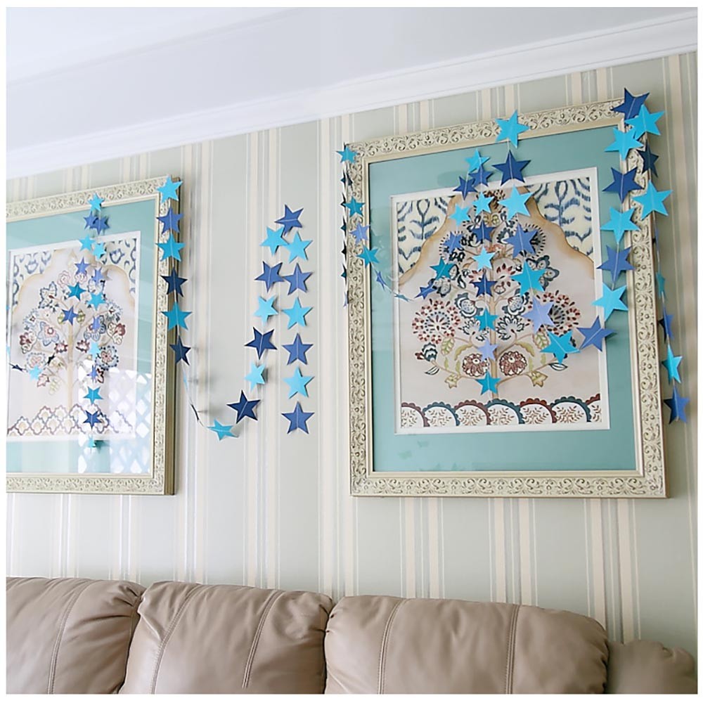 Гирлянда "Звезды" перламутровые 7 см 4 м, Голубой+ т.Синий
