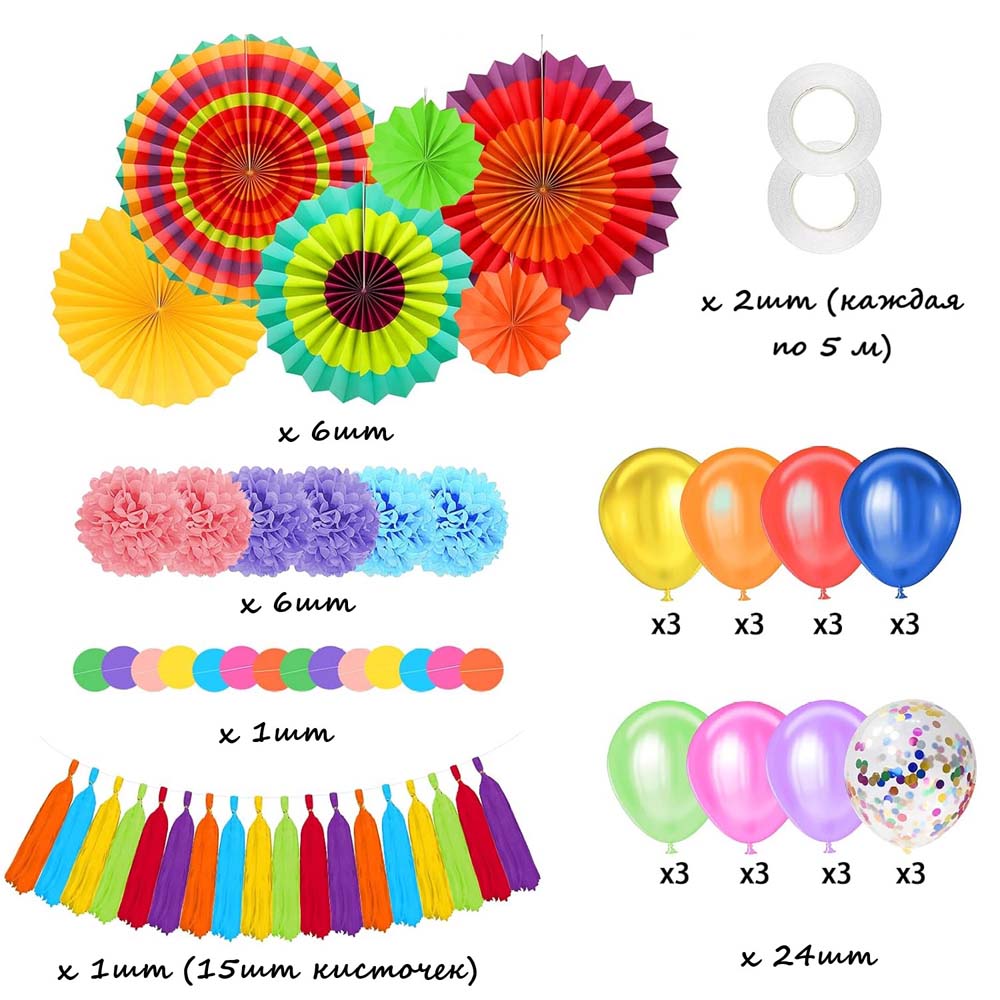 Набор из бумажных украшений, можно применять в качестве декорирования фотозоны к празднику, и праздничного стола. Можно использовать несколько раз.