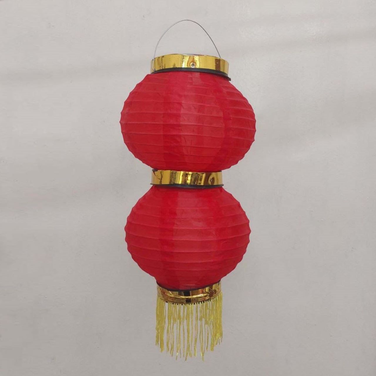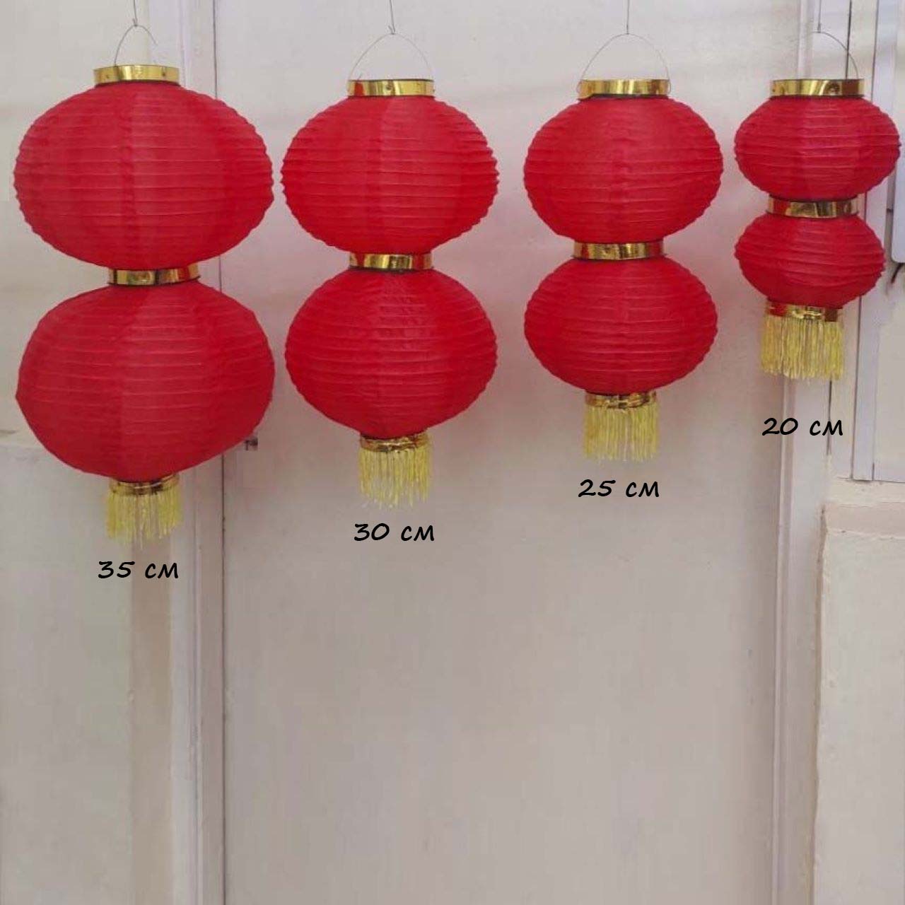 Круглый китайский фонарь состоит из двух ярусов диаметром 20 см каждый.