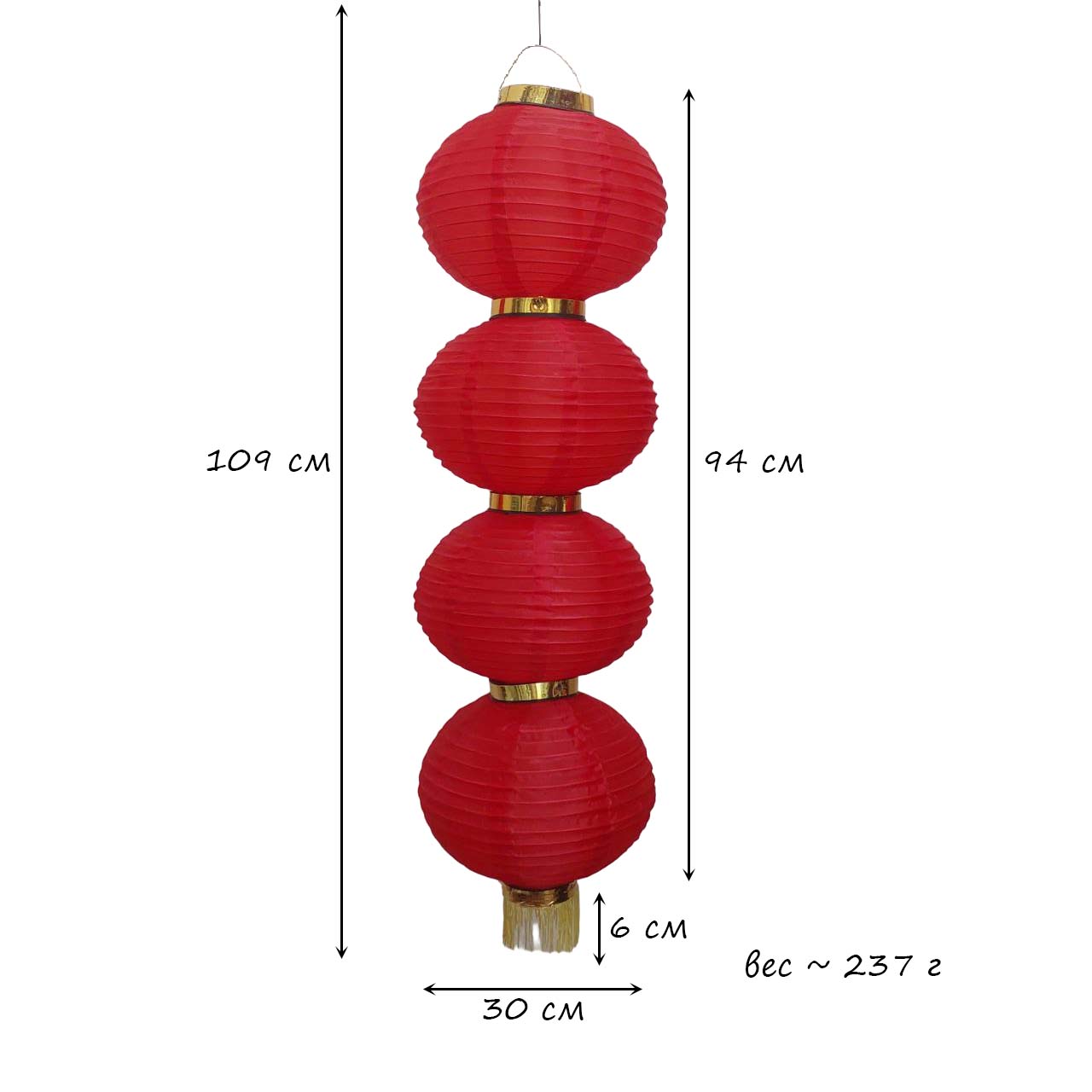 Круглый китайский фонарь состоит из четырех ярусов диаметром 30 см каждый.