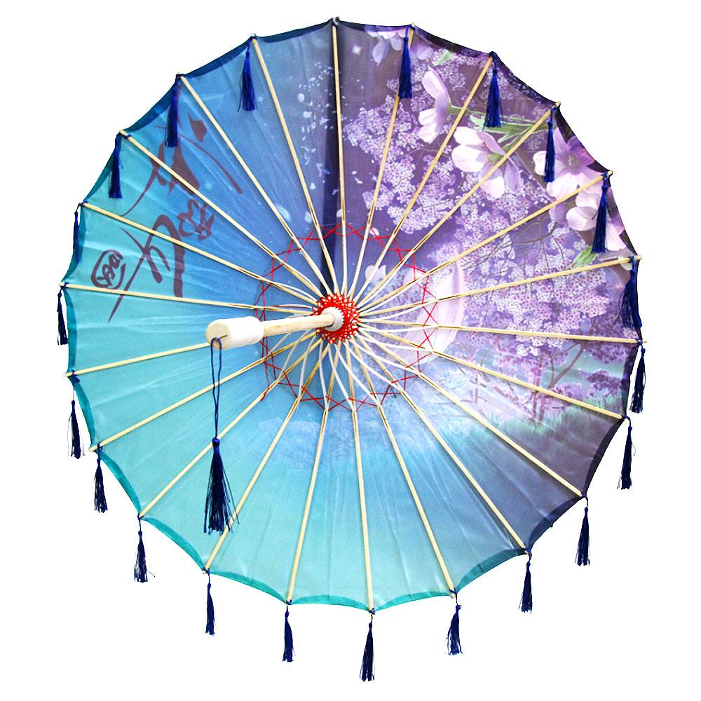 Китайские тканевые зонтики цветочные с кисточками 82х54 см