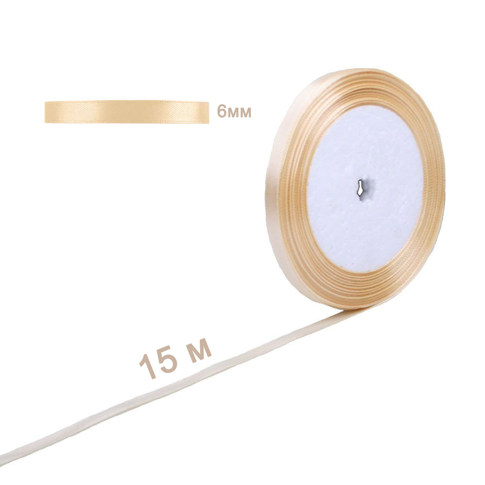 Лента атласная слоновая кость 6 мм х 15 м