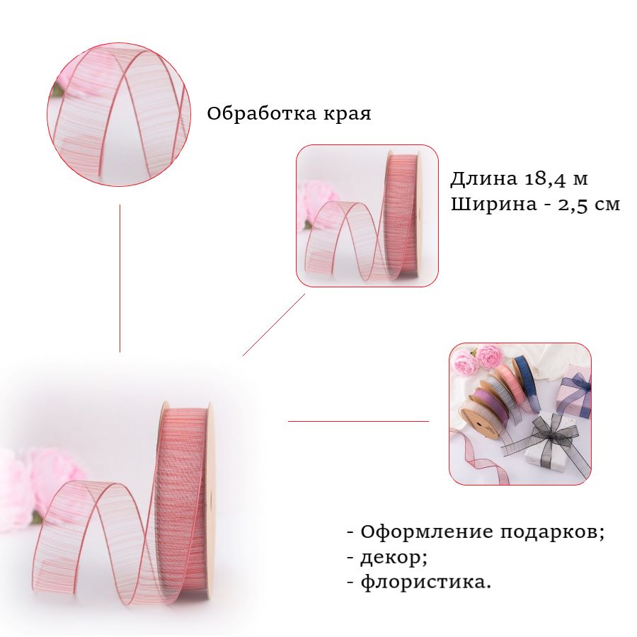 Лента подходит для рукоделия, флористики, создания букетов, бантов, упаковки подарков, новогодней упаковки и других творческих идей.