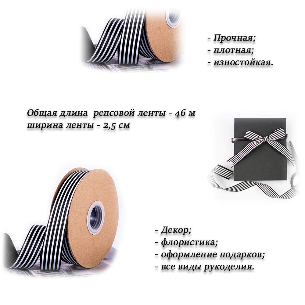 Можно использовать в виде упаковочной репсовой ленты, как жаккардовую тесьму, широко применяется в шитье.