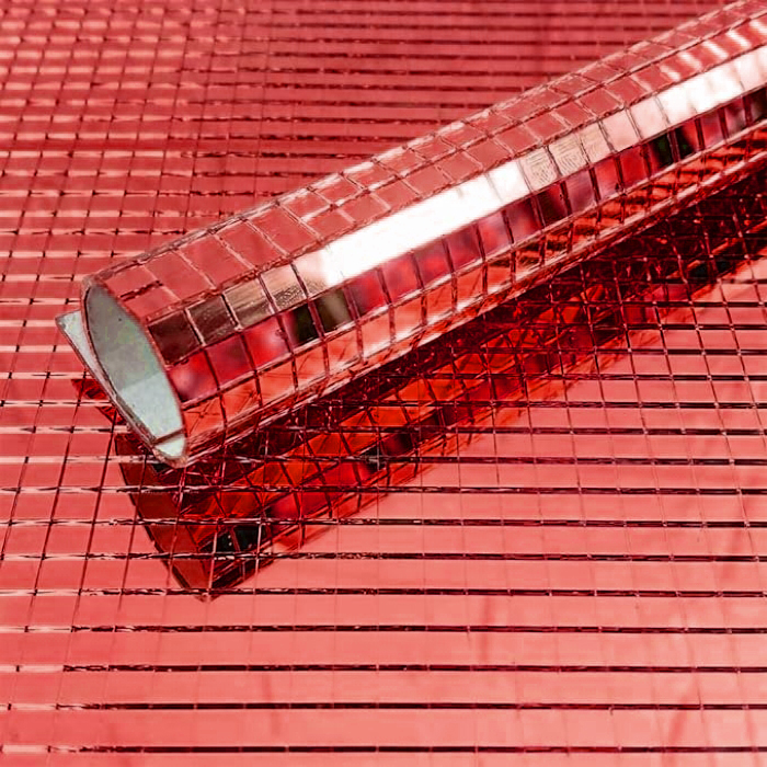 Лента самоклеящаяся зеркальная мозаика акрил 30х30см 5х5мм, красный