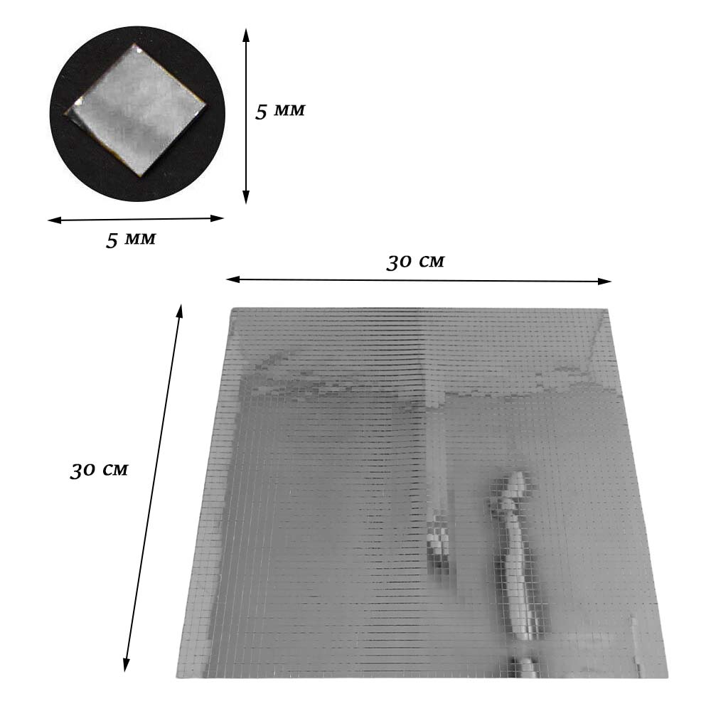 Лента самоклеящаяся зеркальная мозаика стекло, 30х30см 5х5мм, серебро