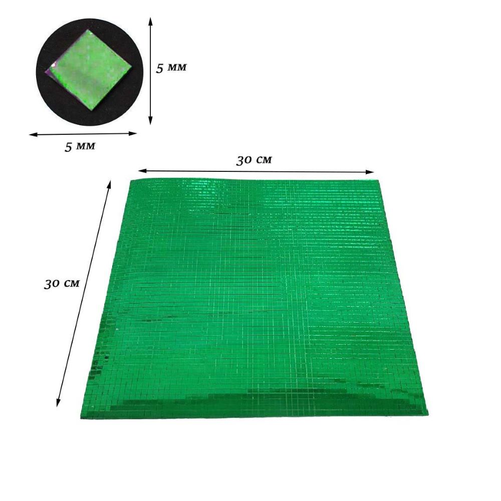 Лента самоклеящаяся зеркальная мозаика стекло, 30х30см 5х5мм, зеленый