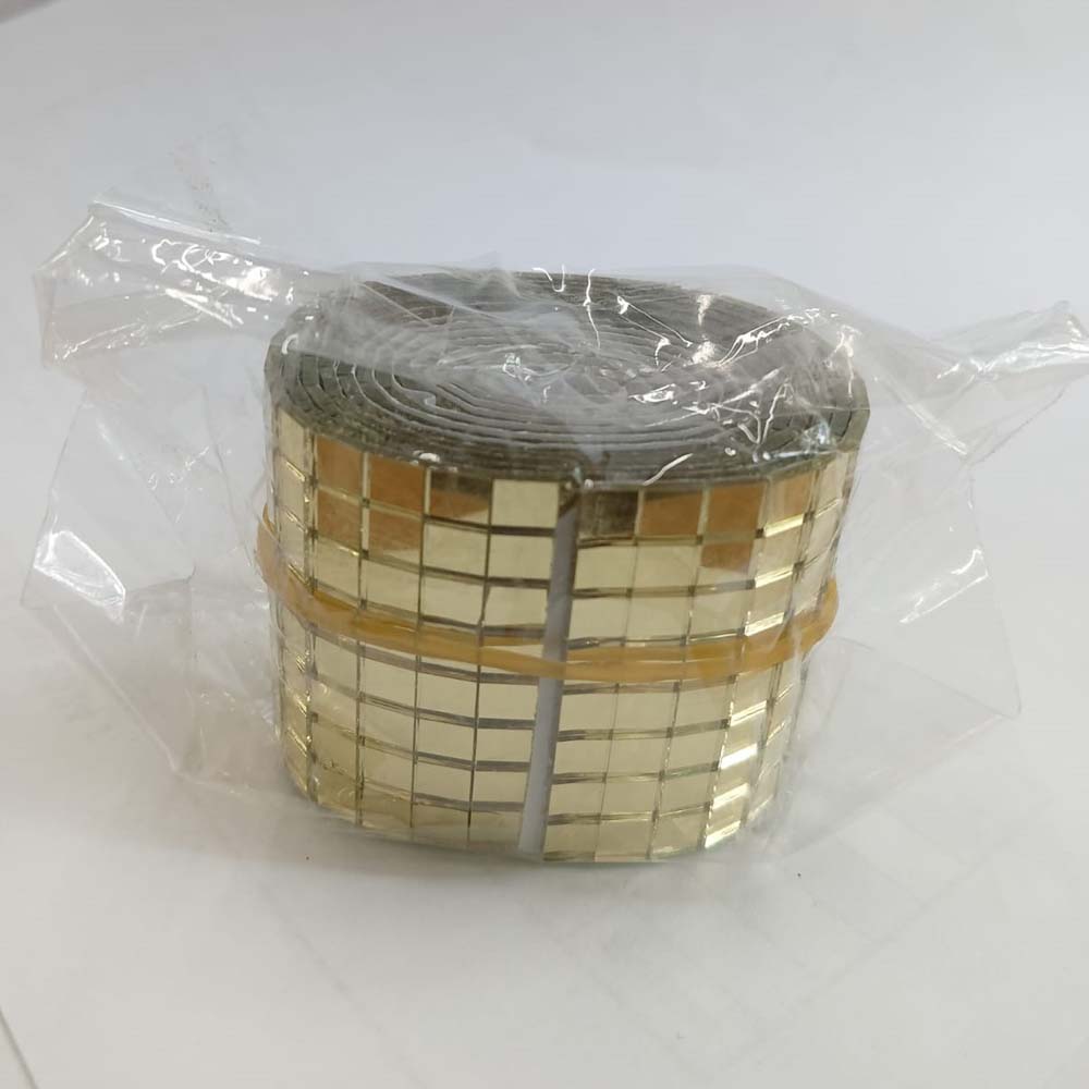 Лента самоклеящаяся зеркальная мозаика стекло, 4см х 1м 5х5мм, золото-лайм