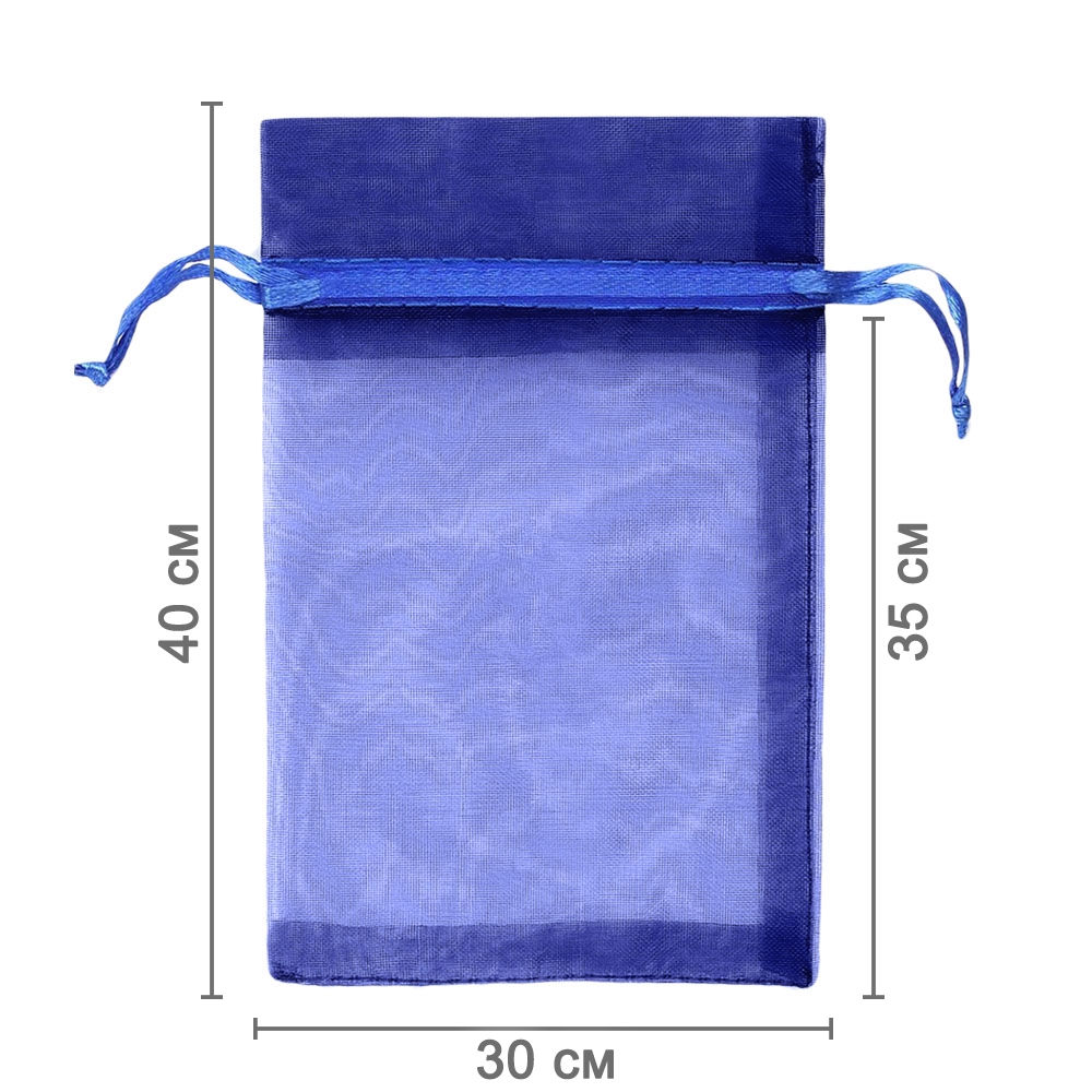 Мешочек из органзы 30 х 40 см — практичный аксессуар для упаковки крупных подарков и хранения предметов. Полупрозрачная ткань подчёркивает содержимое и придаёт праздничный вид.