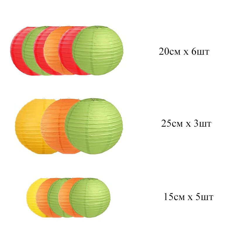 15 см х 5 шт (лимонный, св. оранжевый, св.зеленый).