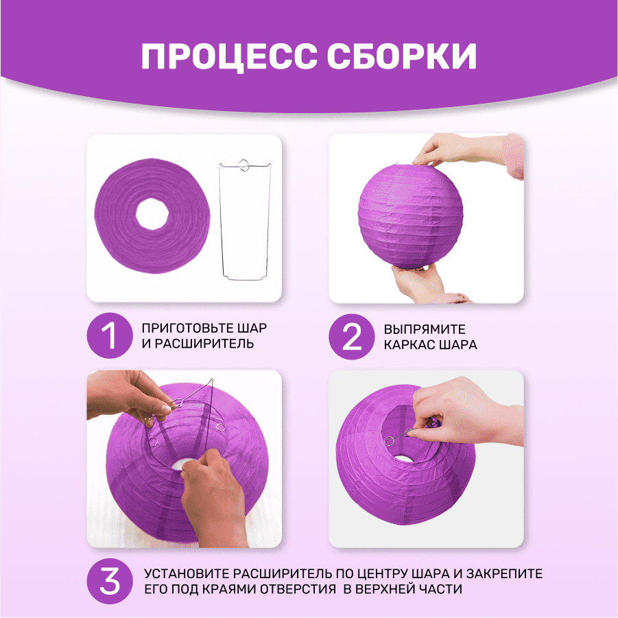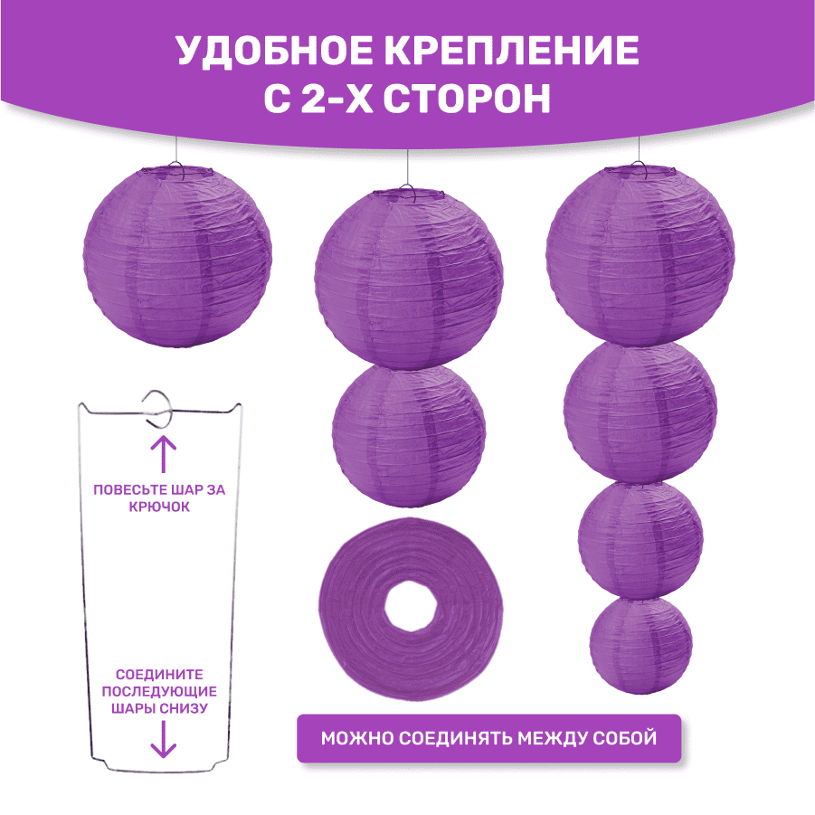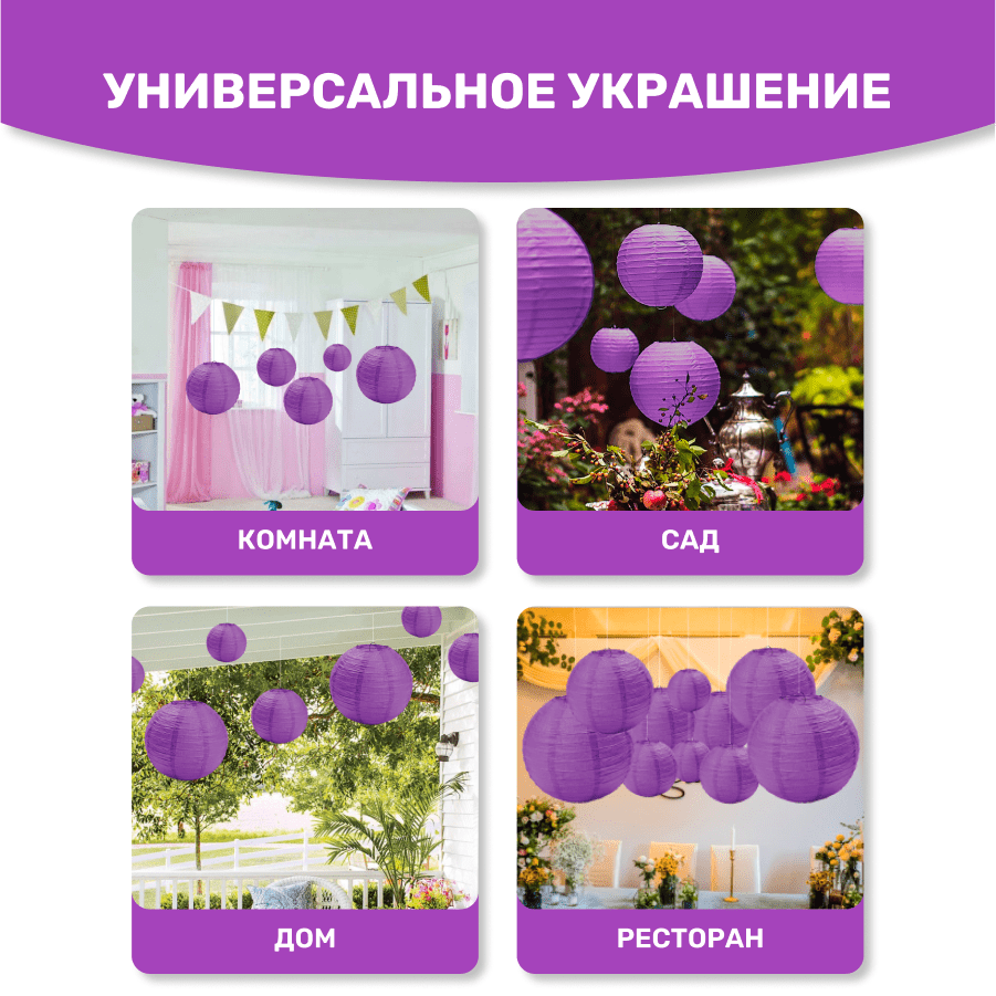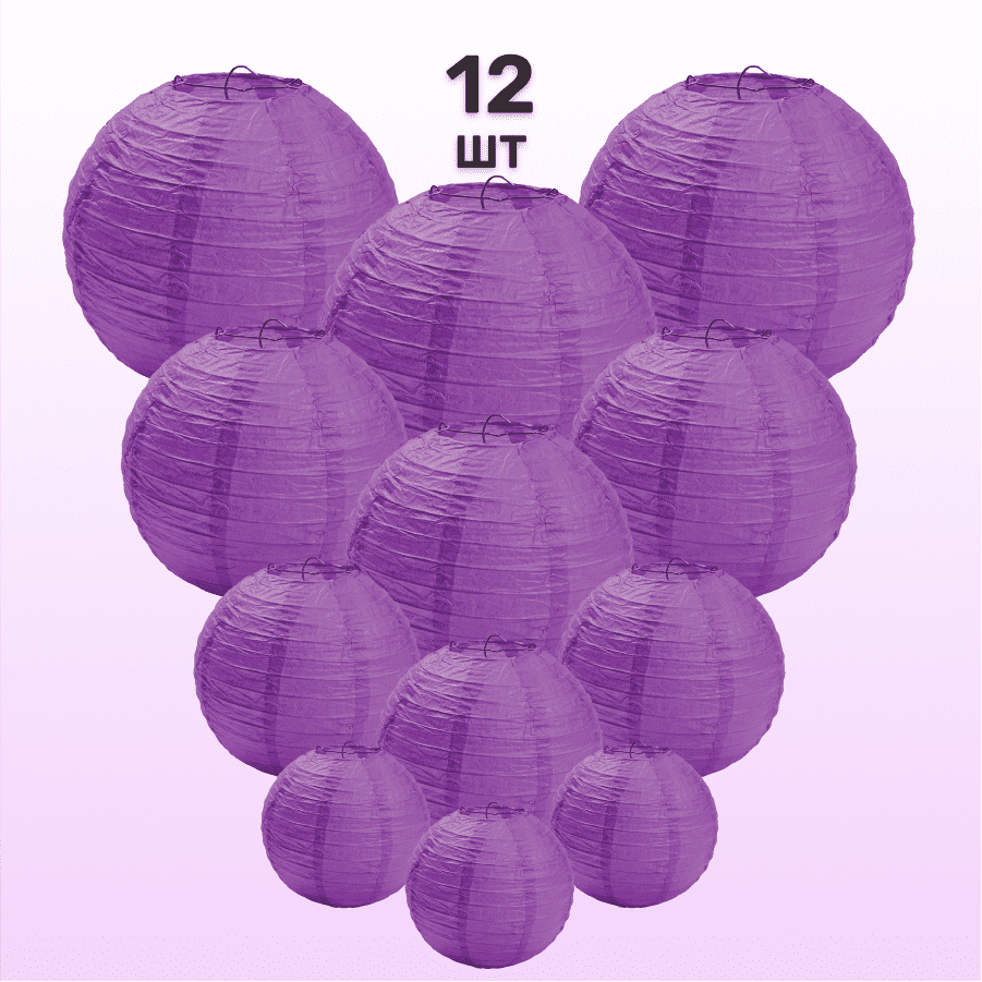 Комплект подвесные фонарики 12 шт фиолетовый