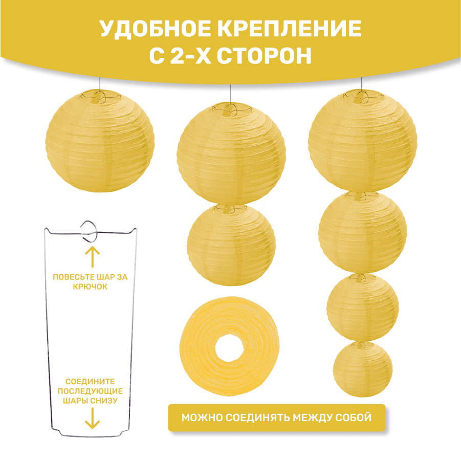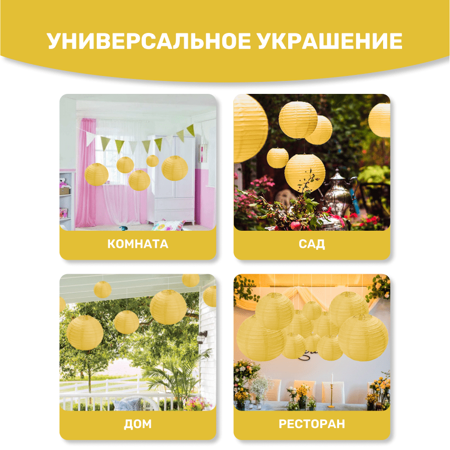 Комплект подвесные фонарики 12 шт желтый
