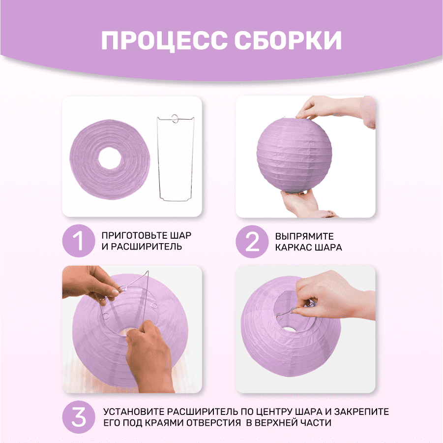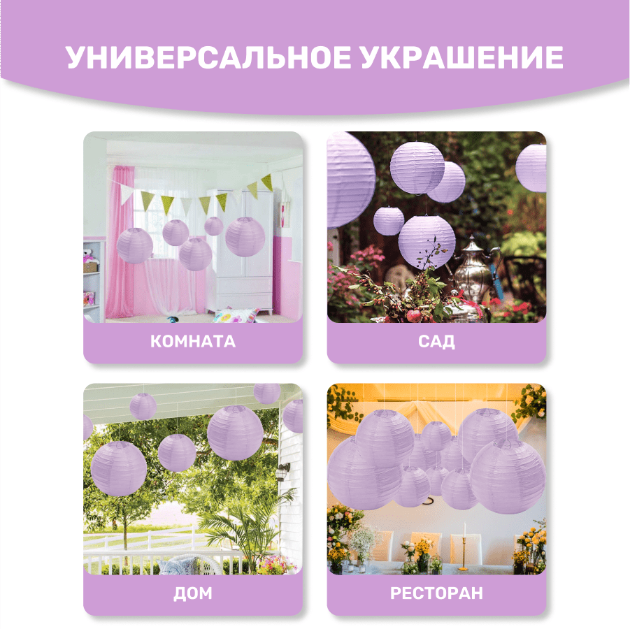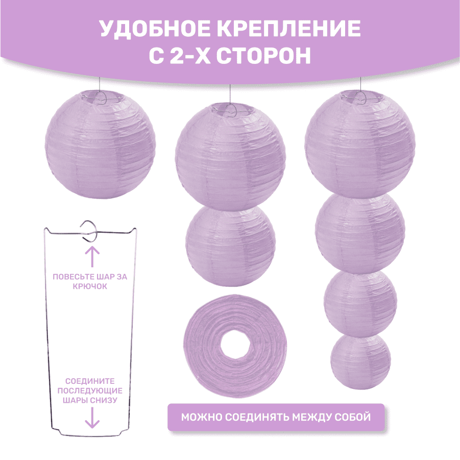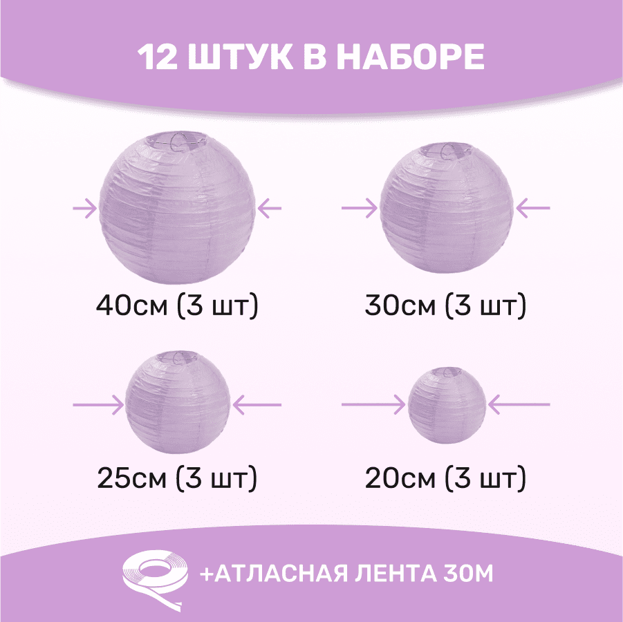 Комплект подвесные фонарики 12 шт светло-сиреневый