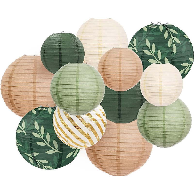 Набор подвесные фонарики 12 шт, зеленый микс