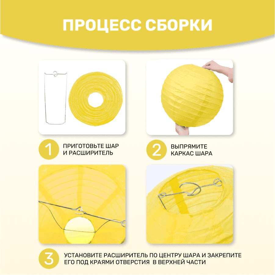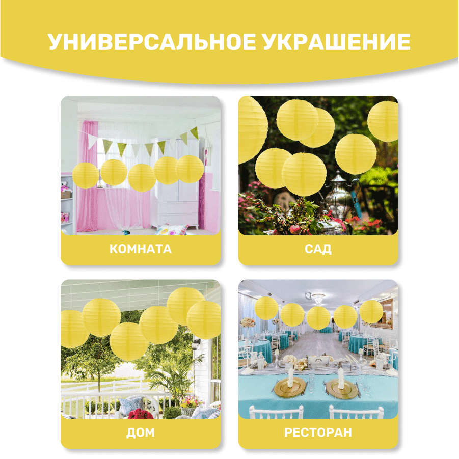 Комплект подвесные фонарики 40 см х 8 шт, желтый