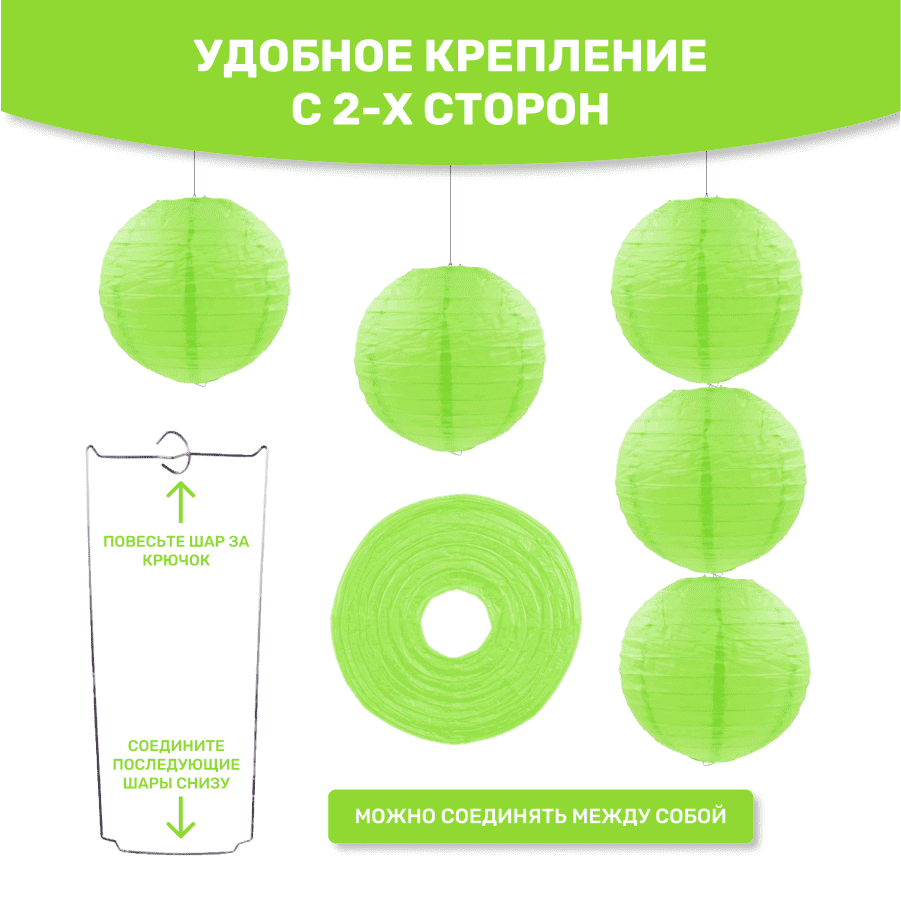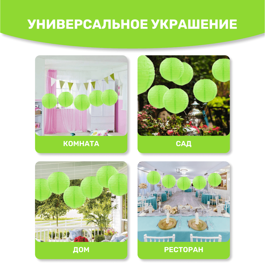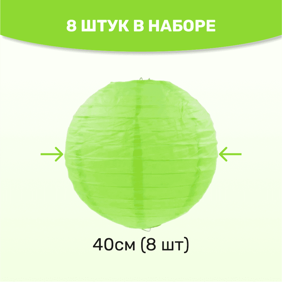 Комплект подвесные фонарики 40 см х 8 шт, салатовый