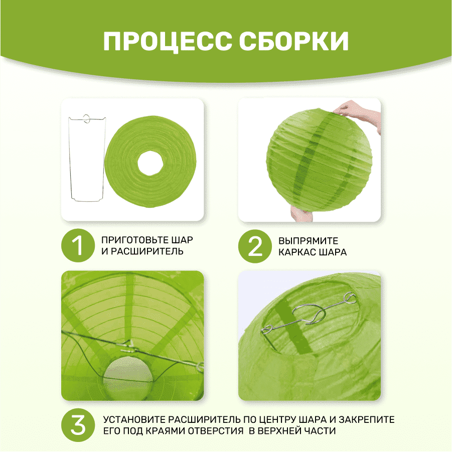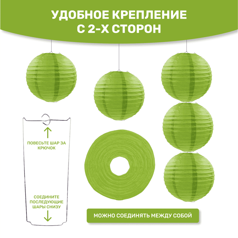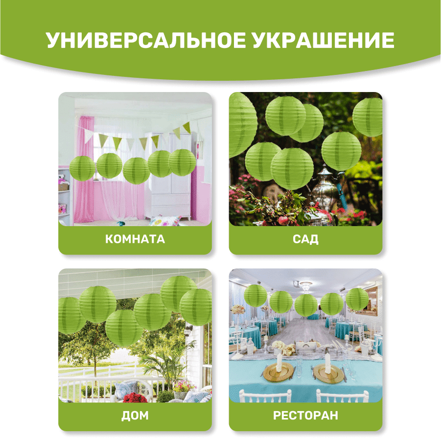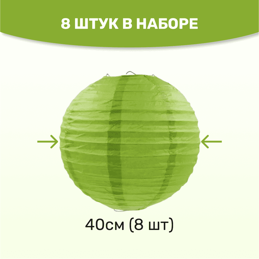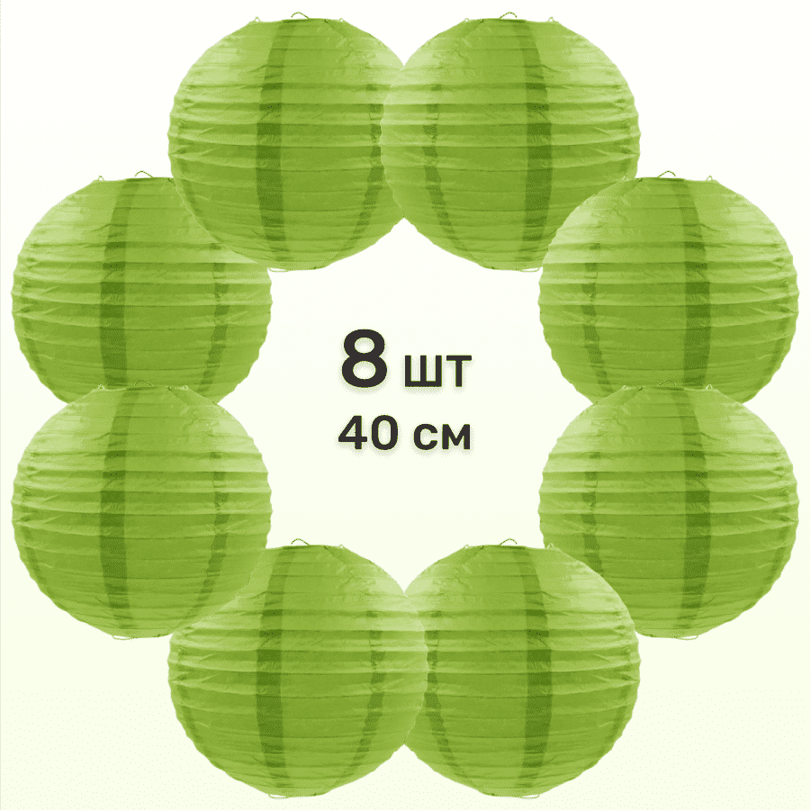 Комплект подвесные фонарики 40 см х 8 шт, темно-салатовый