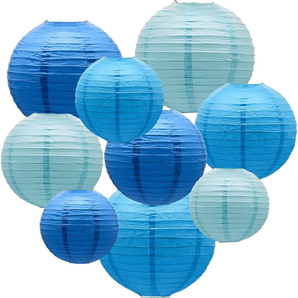Набор подвесные фонарики 9 шт, голубой+синий+т.синий