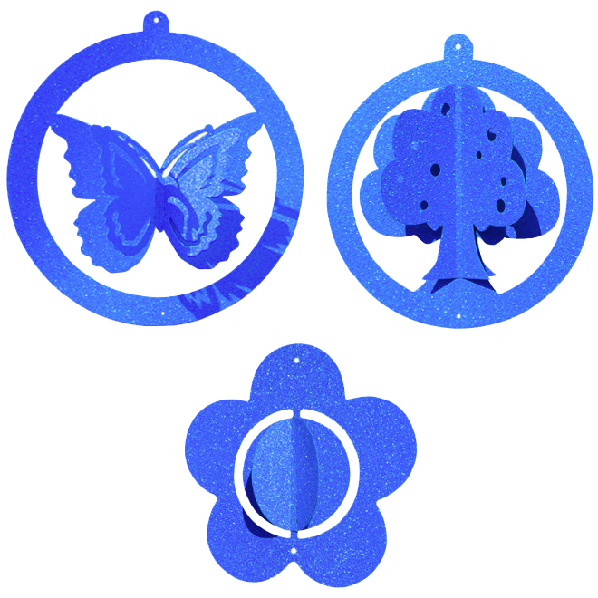 Набор подвесок бабочка+цветок+дерево 3D синий